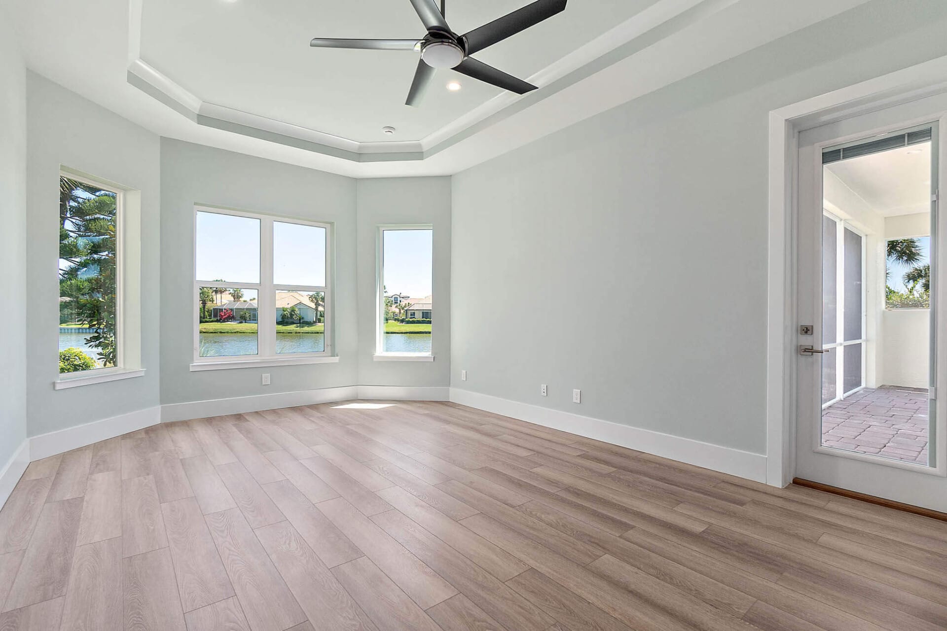 The Casa Bella floor plan offers a luxurious master suite. The master bath has a cozy corner for a tub. It gives the owners separate vanities. A nice size shower comes with a handheld and rain shower head. Between the Master and Bath are separate his and her walk-in-closets. The master suite has a door leading to the Casa Bella’s lanai.